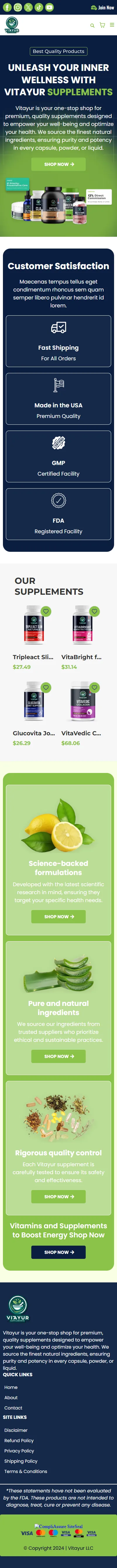 Vitayur is your one-stop shop for premium, quality supplements designed to empower your well-being and optimize your health. We source the finest natural ingredients, ensuring purity and potency in every capsule, powder, or liquid.